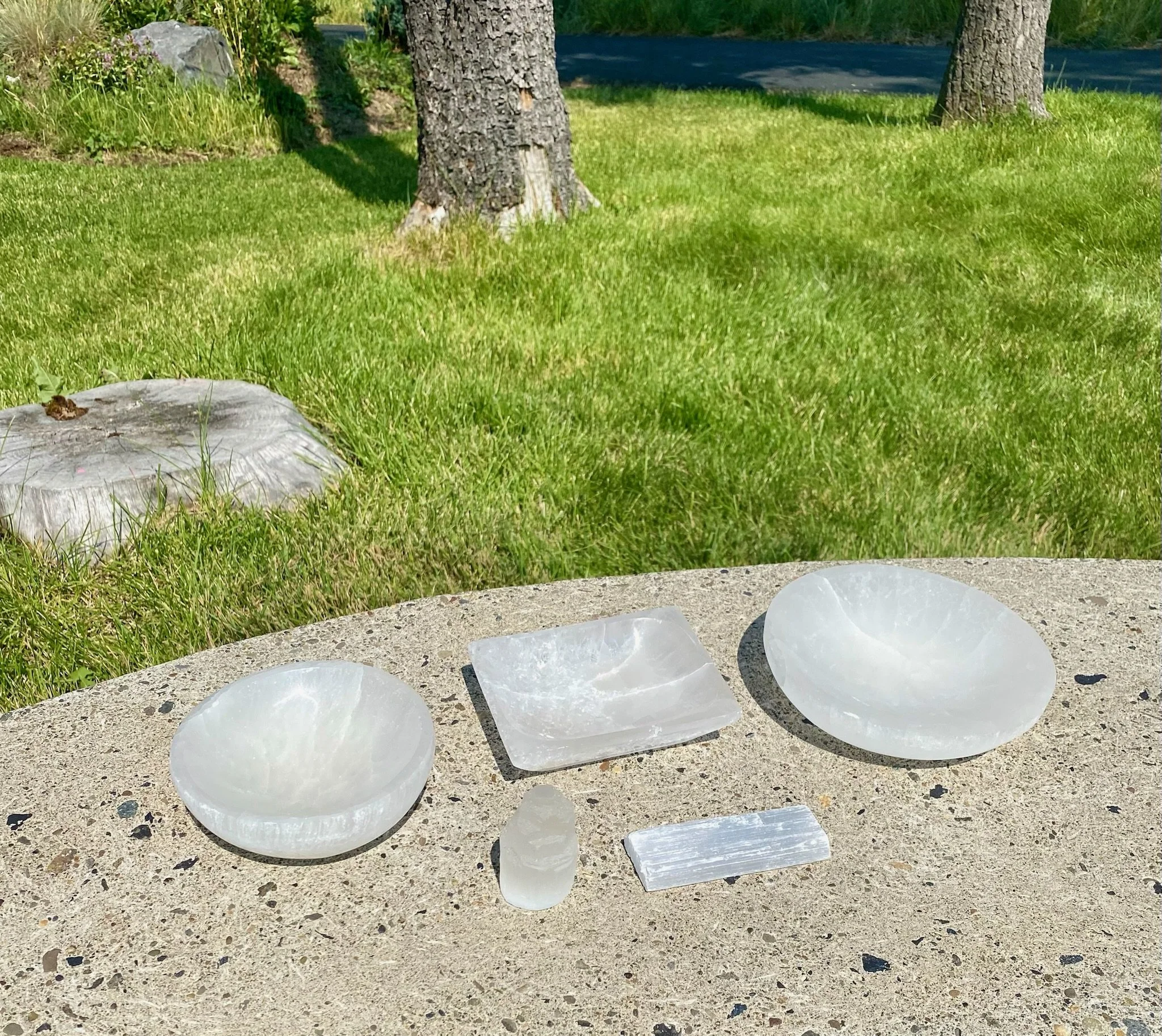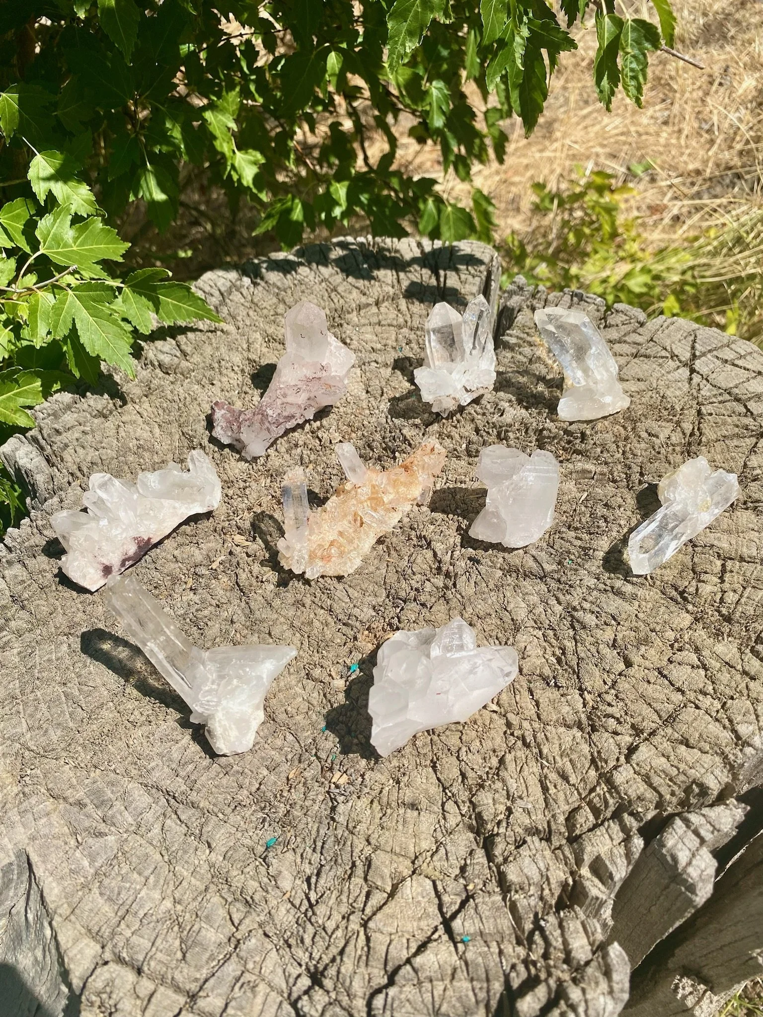 Once we receive crystals they go through a cleansing process before we offer them to you. This cleansing process is to remove any stagnant, negative or stuck energies that are clinging to the crystals from their previous lives and preparing the crystals for their new homes with you. We use different cleansing techniques depending on the stone (some do not do well with water). The techniques are: water, intention, smoke, music and Full Moon charging. Check each item to learn how they were cleansed.