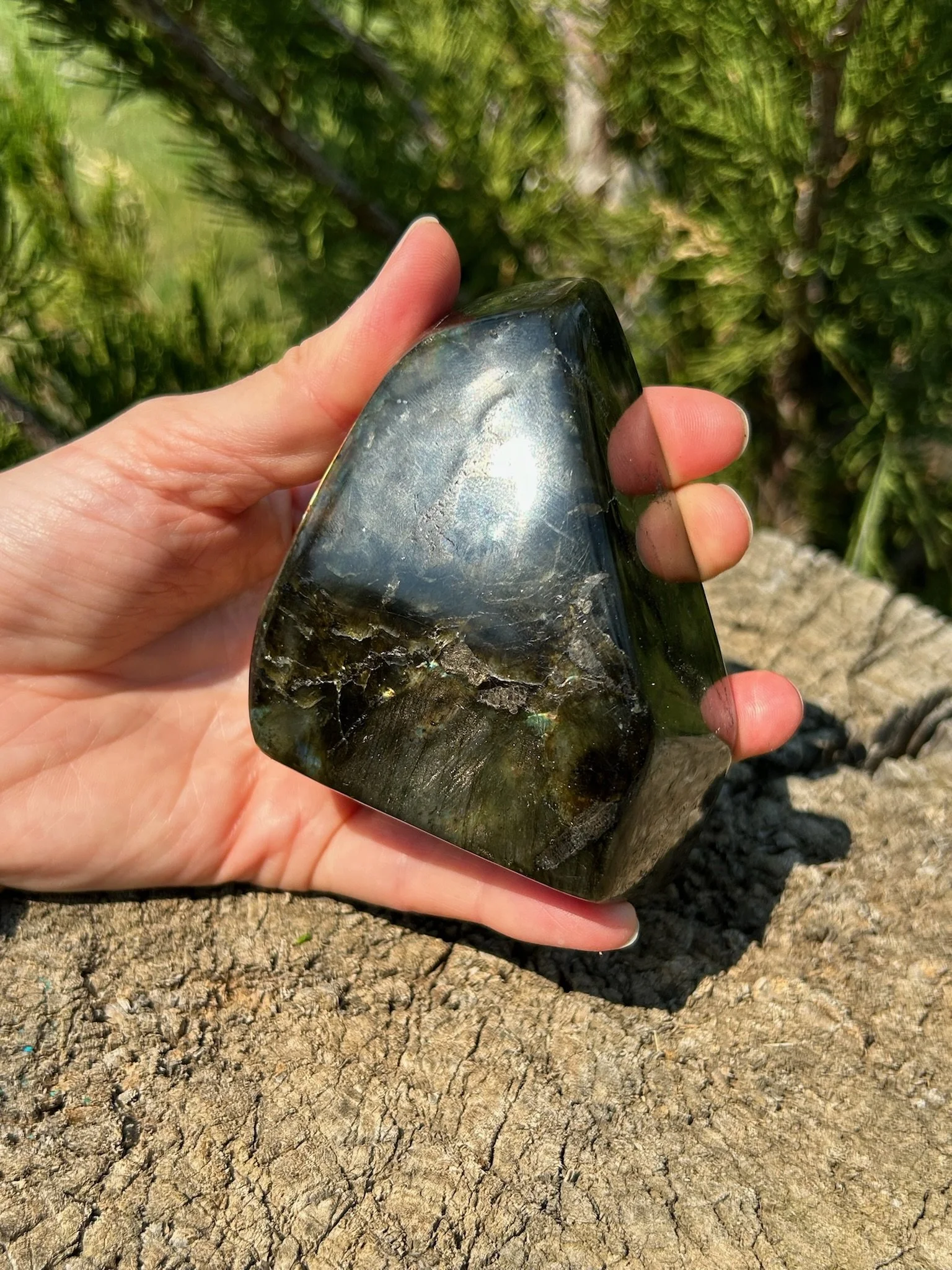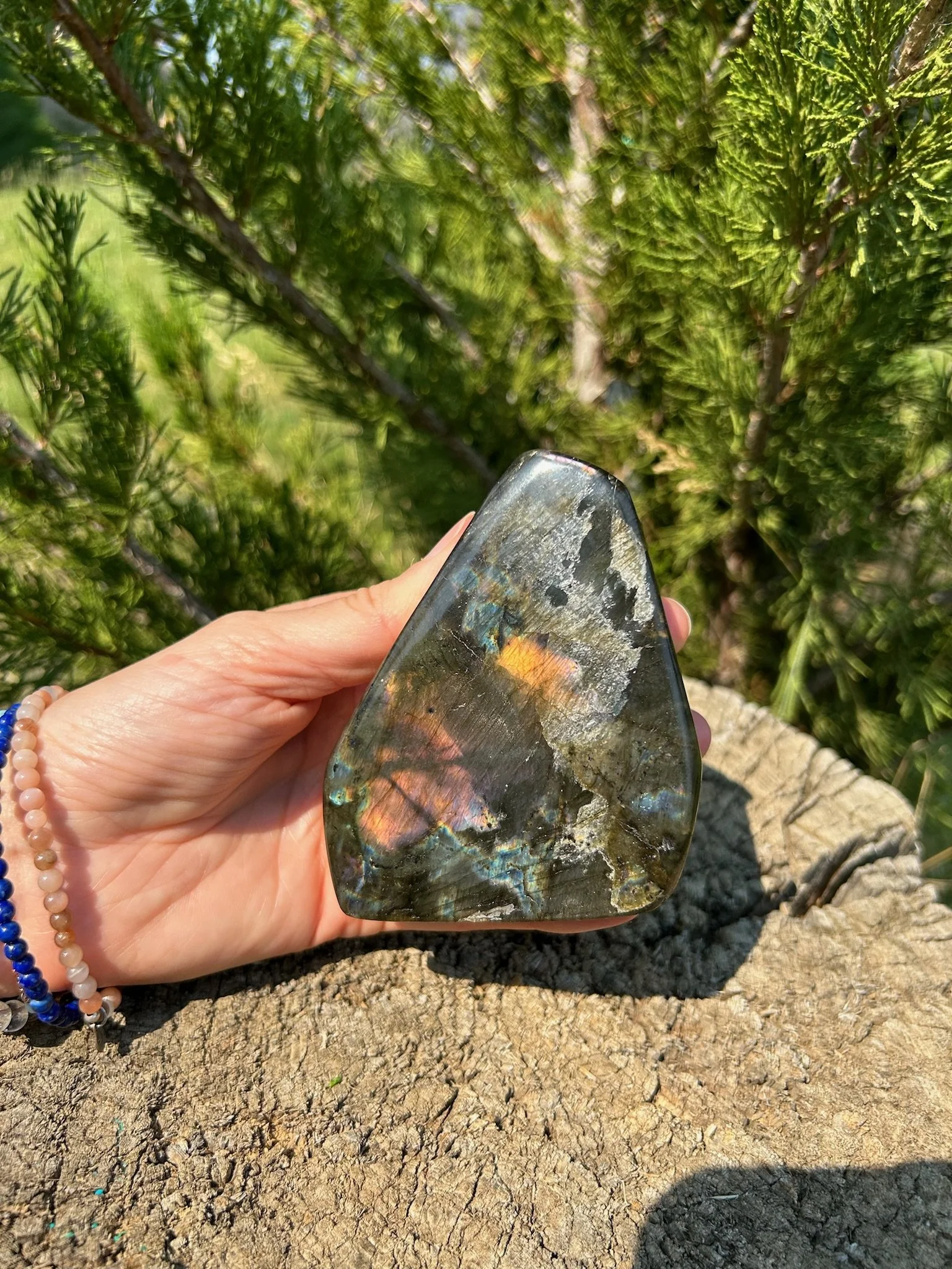 SpectrolitePrice: $55Weight: 15.2 ozCleansing Method: Water + Smoke+ Music + IntentionFor inquiries or to purchase, contact us directly at RusticGBoutique@gmail.com Return Home